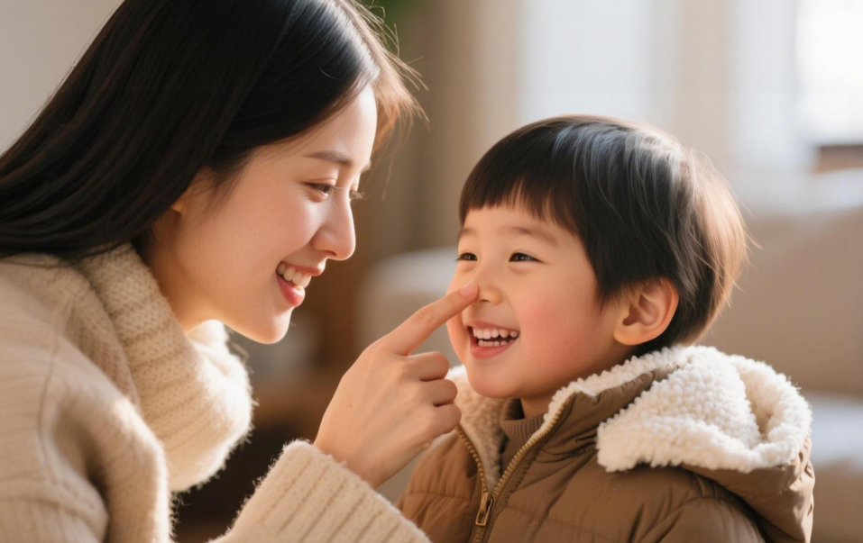 四、通鼻操 通过轻柔按摩鼻周穴位,可以促进局部血液循环,暂时缓解鼻塞,孩子也能感受到被关爱的放松。 简单三步骤: ①搓热鼻翼:用食指指腹,上下快速轻搓孩子鼻翼两侧约30次,直至局部微热; ②按压迎香穴:鼻翼两侧的凹陷处即为迎香穴,用指腹轻轻按压并打圈,每次5-10秒,重复几次; ③推擦鼻梁:用拇指和食指指腹,轻轻捏住孩子鼻梁根部,向下推至鼻尖,重复10次左右。动作务必轻柔。